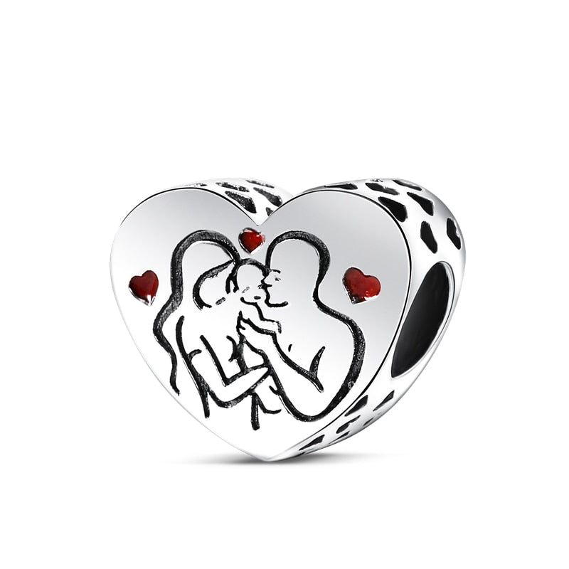 Liebevoller herzförmiger Charm mit kleinen Herzen und einer glücklichen Familie. Perfektes Geschenk zur Geburt eines Kindes, an eine Mama oder Papa.