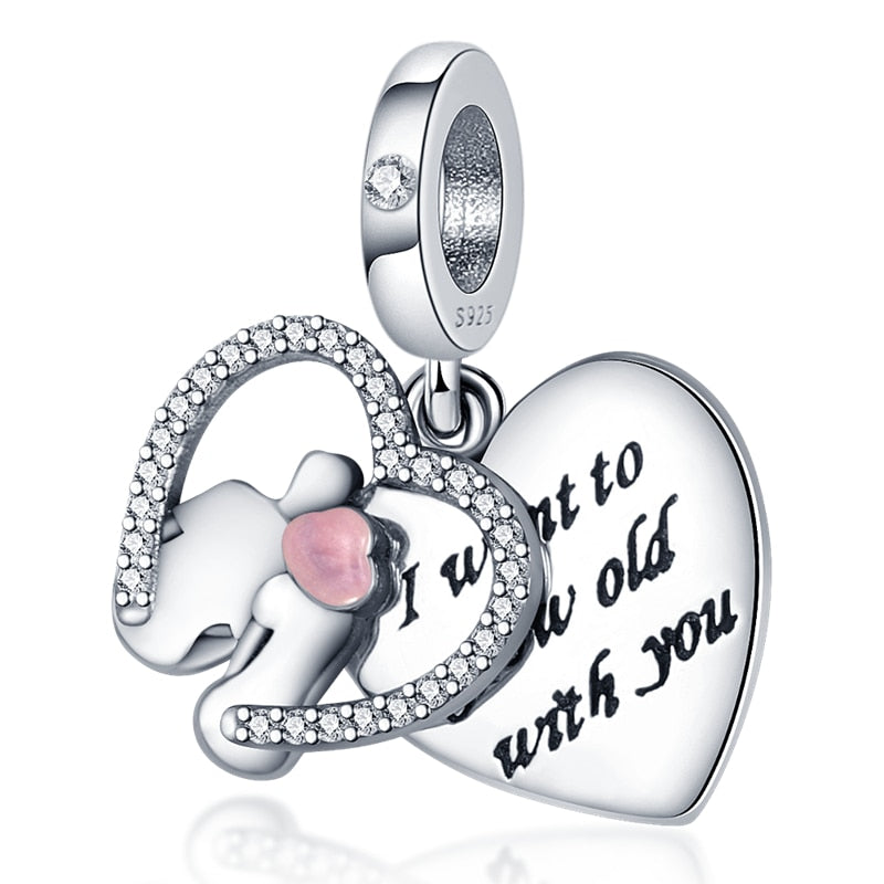 Zeige deiner Liebsten, wie sehr du sie liebst, mit diesem Charm-Anhänger. Eine Liebesgeschichte die niemals endet soll mit diesem Charm zum Ausdruck gebracht werden. Das eine Herz ist graviert mit: I want to grow old with you. Das andere ist offen gestaltet mit einen verliebten Paar und umrandet mit feinen weißen Zirkonia Steinen.