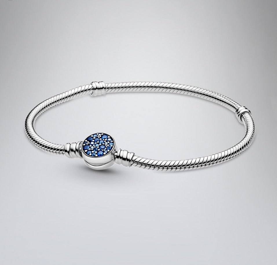 Dieses edle Schlangenarmband überzeugt durch seinen runden Clipverschluss, der rundum mit funkelnden blauen Zirkonia-Steinen besetzt ist. Ein elegantes Detail, das dem klassischen Design eine moderne Note verleiht. Perfekt, um deinen persönlichen Look zu unterstreichen – solo getragen oder kombiniert mit deinen liebsten Charms.